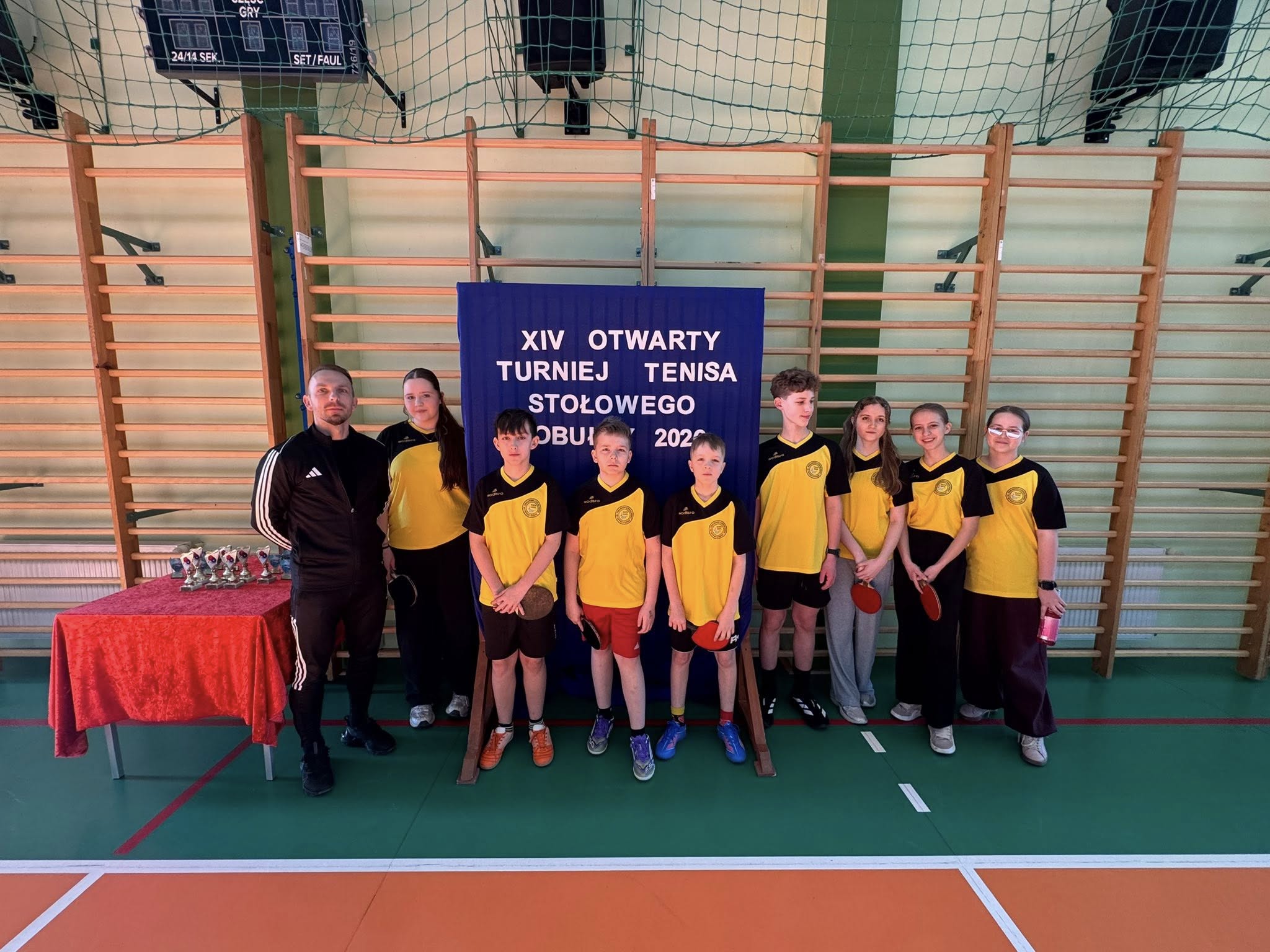 Naszą szkołę reprezentowało 9 ambitnych uczniów, którzy walczyli przy stołach, pokazując wielkie zaangażowanie i sportową postawę.