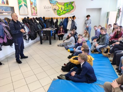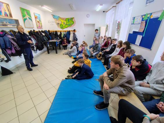 W naszej szkole mieliśmy spotkanie z funkcjonariuszem policji, który opowiadał i ostrzegał dzieci przed niebezpieczeństwami jakie mogą je spotkać w czasie ferii. Bardzo dziękujemy.